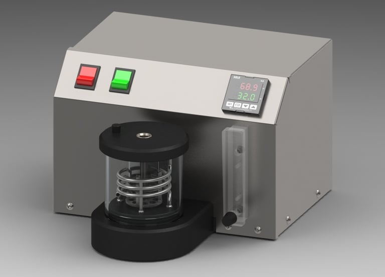 The VitalRegulate™ is designed for efficient infusion of any gas into aqueous sample. Simply pour into the round-bottom tube in the jacketed sample holder, turn on motor to spin sample, set temperature and flow rate, and wait.
